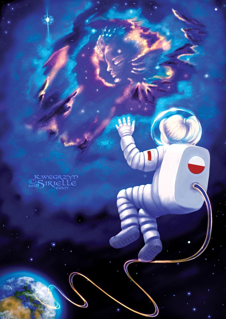 The original astronaut girl representing myself does have Polishg flag on her space suit, but the image in prints doesn't have any flag to make sure children from all countries can enjoy the space journey!